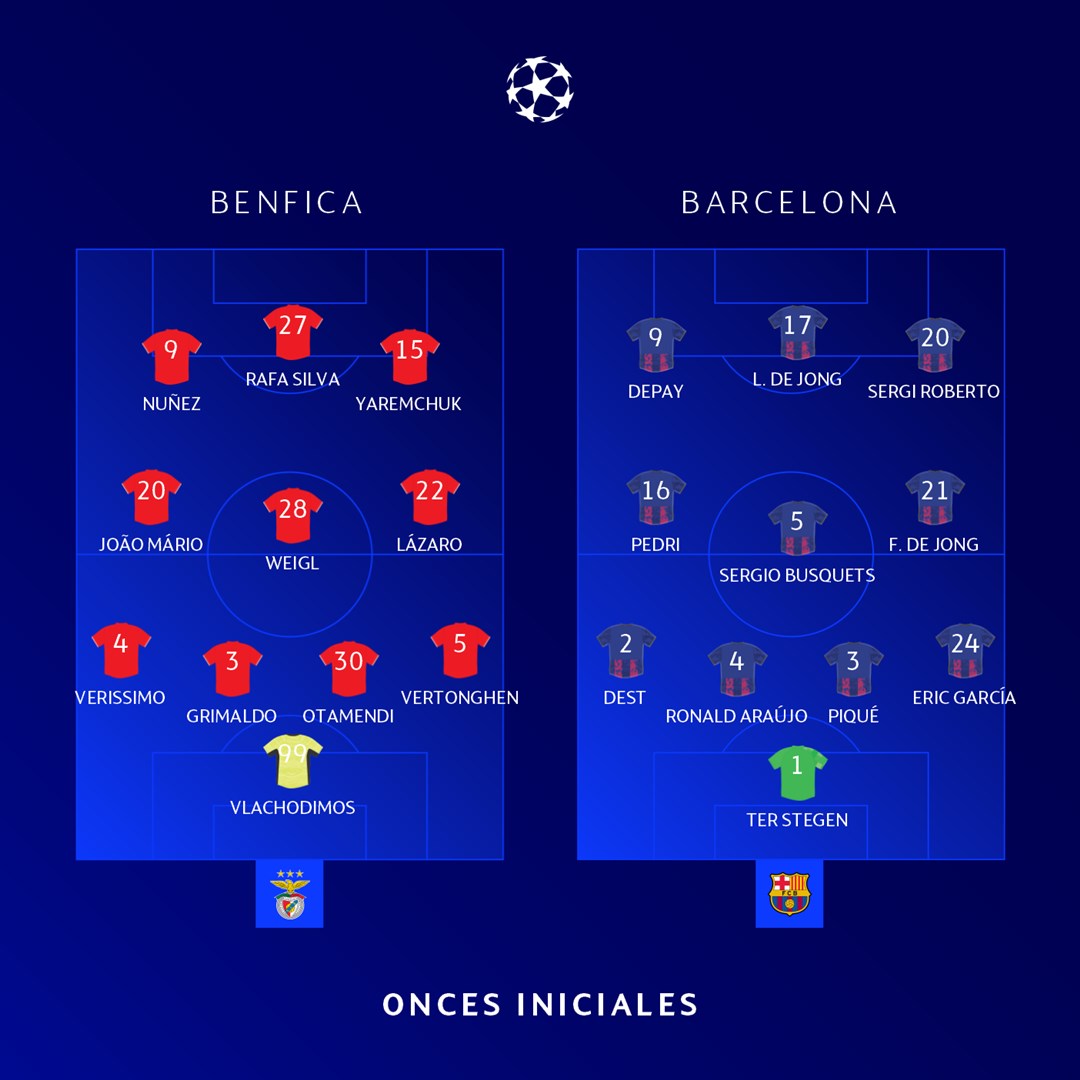 Las alineaciones del partido.