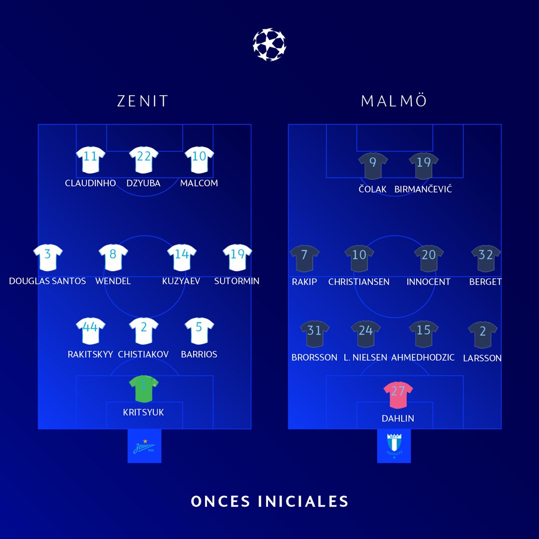 El Zenit golea 4-0 al Malmö. Con esta victoria el Zenit se ubica en el tercer lugar con 3 puntos y el Malmö queda en el cuarto lugar con 0 puntos.